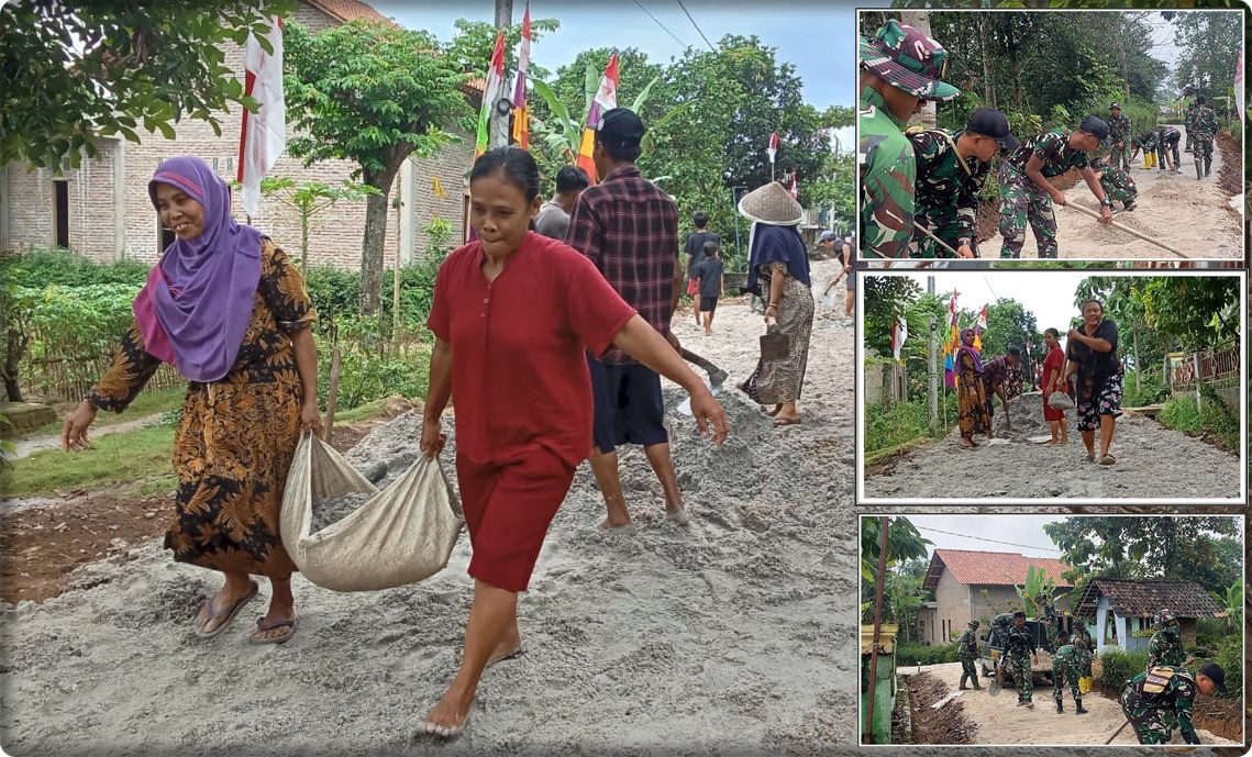 LAMPUNG TENGAH (19/8/2026) – Suasana Kampung Sukanegara, Kecamatan Bangunrejo, Lampung Tengah pada Selasa, 19 Agustus 2025 tampak berbeda dari biasanya. Di lokasi pengamparan pasir, Dusun 1, terdengar riuh semangat gotong royong. Tak hanya dari personel Satgas TMMD ke-125 Kodim 0411/KM dan warga laki-laki, tapi juga dari barisan emak-emak yang tiba-tiba “menggeruduk” lokasi pekerjaan.