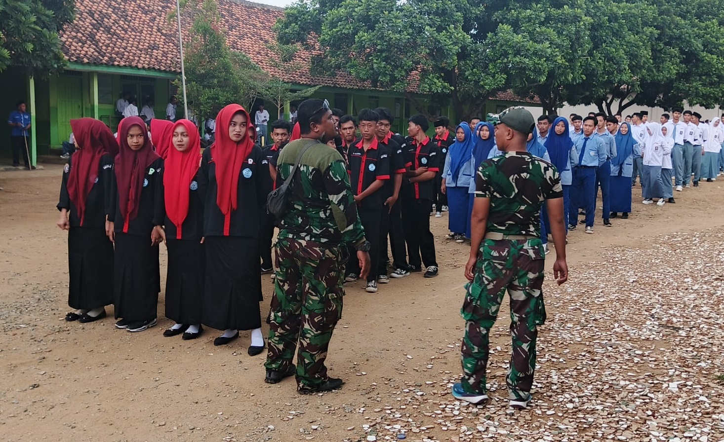 LAMPUNG TENGAH (1/8/2025) – Dua personel Satgas TMMD Kodim 0411/KM, Serda Erwansah dan Serda Satria, melaksanakan seleksi calon anggota Paskibra di SMK Al Ihsan, Kampung Sukanegara, Kecamatan Bangunrejo, Kabupaten Lampung Tengah pada Jumat, 1 Agustus 2025.