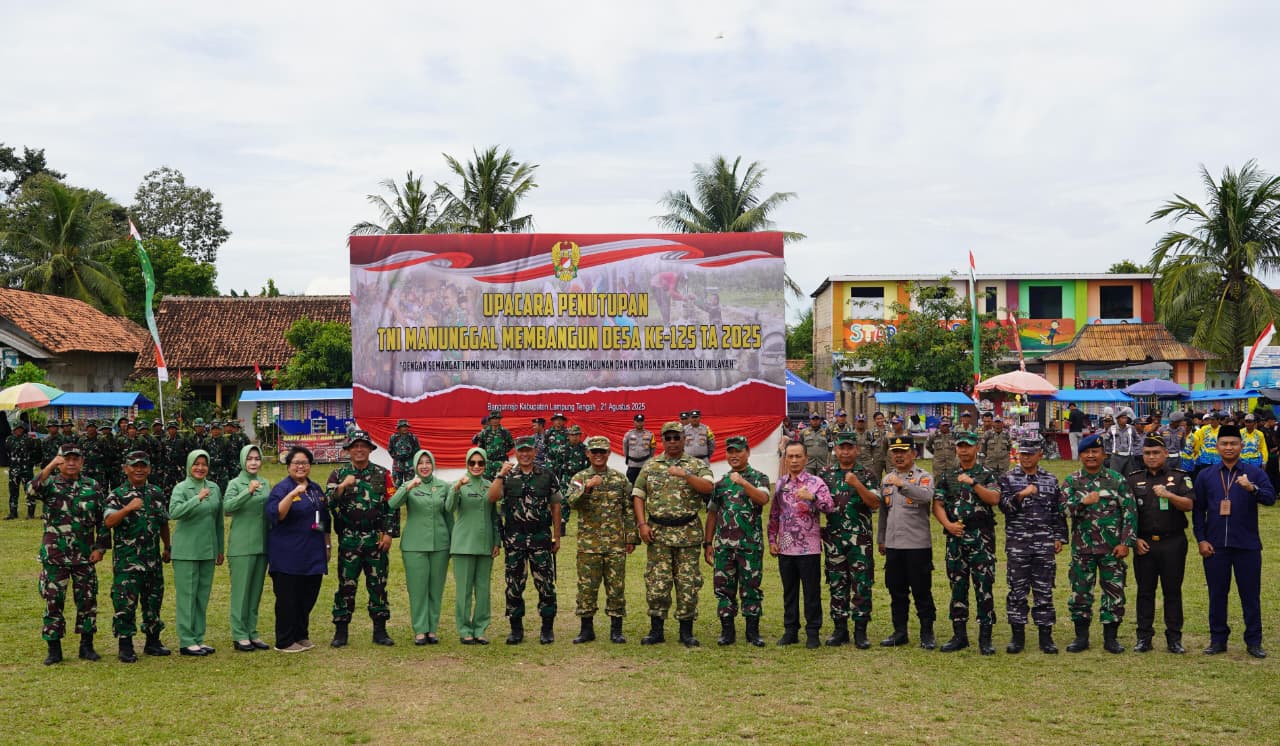 LAMPUNG TENGAH (21//8/2025) – Upacara penutupan TNI Manunggal Membangun Desa (TMMD) Ke-125 Tahun Anggaran 2025 Kodim 0411/KM digelar di Lapangan Wijaya Kusuma, Kampung Sukanegara, Kecamatan Bangunrejo, Kamis (21/08/2025).