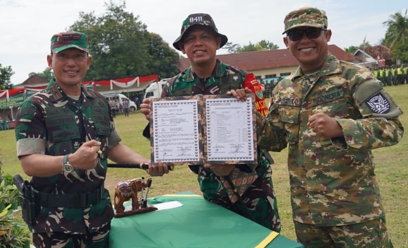 Susunan acara berjalan khidmat, mulai dari laporan Dandim, penandatanganan berita acara serah terima, penanggalan tanda peserta, pembacaan amanat, hingga doa penutup. Pasukan upacara terdiri dari gabungan TNI, Polri, aparatur desa, dan pelajar.